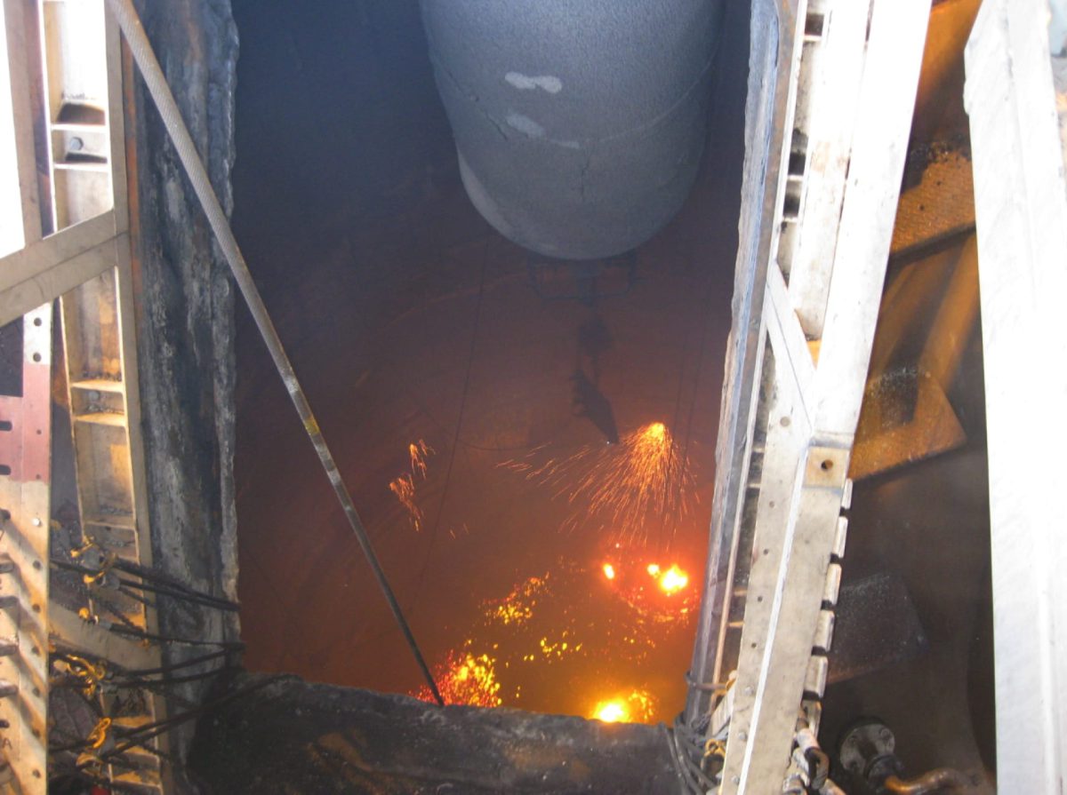 Customer Story Life Extension of BlueScope Steel Blast Furnace A major project to extend the life of a blast furnace at BlueScope Steel Limited provided another significant platform for the Soto team’s rare talents in collaborative innovation and advanced engineering. BlueScope operates Australia’s largest steelmaking facility at Port Kembla, in the heart of the sprawling Illawarra region south of Sydney. The centre of the steelworks operation thrums with a blast furnace making the iron from which the steel is produced. The furnace is essentially a huge steel shell structure. The giant shell is protected from the intense heat of the furnace by a combination of copper and cast iron staves through which water is circulated, forming an internal refractory lining. Each copper stave can weigh up to 3.5 tonnes, and can be as large as 3.5m x 2m. Over time, these staves wear out and the water circulation is depleted, requiring temporary shell cooling methods to be used. However, these alternative cooling methods are less effective than the water-circulating staves, causing the furnace wall temperatures to rise. Consequently, furnace production drops. The magnitude of this situation cannot be understated: if the blast furnace stops manufacturing iron, steel production at Port Kembla would grind to a halt. During the 3rd campaign of Blast Furnace No. 5, it was found that the staves were deteriorating at a much higher rate than anticipated. The risk of associated damage to the furnace made it critical that BlueScope find a solution. BlueScope initiated a major project that required exceptional ingenuity as the staves were to be replaced from outside the furnace, avoiding the need to shut it off. The size of the project meant that it would span several years. A massive amount of pre-planning, engineering, and manufacture was involved. For example, the copper staves take approximately 9 months to be manufactured and delivered, and a minimum of 12 months of engineering and planning were necessary prior to the first stave replacement shutdowns. During each shutdown event, the blast furnace burden would be run down to a minimum level and maintained by its residual heat for 5 days until reactivated. There was no flexibility about these 5 days: it was imperative that, during this period of furnace shutdown, the staves be removed and replaced using unique handling equipment that was carefully designed by Soto to suit the constraining conditions. These conditions included limitations of the access areas, lack of clear visibility, heat that rose up to 350°C inside the furnace, and the necessity of working at a height. This set of conditions made the BlueScope blast furnace project work extremely specialised, demanding an innovative and collaborative work methodology and rigorous engineering design. Just as important was building close work relationships with the BlueScope teams, so that everything worked like clockwork when the personnel replaced the staves while remaining outside the furnace, beating the clock every time to meet the absolute completion date. At the conclusion of the BlueScope blast furnace project, the Soto team completed a celebratory summary of the factors that led to project success. These included: Accurate and innovative design engineering and stave replacement methodology. Detailed planning. Safety built into all project phases. Close collaboration with the client. An effective team approach that built invaluable relationships between key BlueScope personnel and Soto’s design engineers. The winning elements above can be more simply described with Soto’s revered motto: Everything Engineered. Scope of Soto’s Work Review of existing information covering the furnace design and previous stave replacement projects. Engineering design and stave replacement methodology. Design for temporary works and construction lifts. Documentation of design and replacement methodology. Safety reviews and design of equipment to facilitate stave replacement. Detailed engineering support throughout trials and execution of the project including: Hands-on site supervision and problem solving in close collaboration with key BlueScope staff Back office engineering design, modelling and calculations. Why Soto? Shutdown brownfield engineering experience and successful track record. Organisational memory of previous stave replacements at BlueScope Steel. Successful track record of working collaboratively with BlueScope personnel. Ability to provide in-house integrated concept-to-detailed multi-disciplinary engineering comprising mechanical, structural, advanced computation analysis and expert knowledge of finite element analysis (FEA), 3D modelling, and drafting. Lift design for heavy loads in constrained brownfield site conditions where only minimal disruption to operations can be tolerated. Provision of practical on-site and hands-on engineering support during the construction phase. How? The Detailed Snapshot of Soto’s Success on the Project The project structure staged stave replacement into specific areas within the furnace, each having tailored procedures and equipment to complete the works. In general, each area had the following stages: Stage A: Research and Development, Engineering and Initial Trials Review of existing information including: Information on proposed stave replacement methodology from BlueScope’s blast furnace personnel. Existing 3D inventor model of the furnace. Existing drawings, technical specifications, and calculations. Information on the proposed cooling system modifications that will affect the stave replacement methodology. Mechanical engineering design of equipment and construction aids required for the stave replacement project, and continual development of 3D Master model. Structural modifications to facilitate safe access during shutdowns, including new and temporary platforms, lifting beams, and movement portals through structure. Client deliverables included 3D In